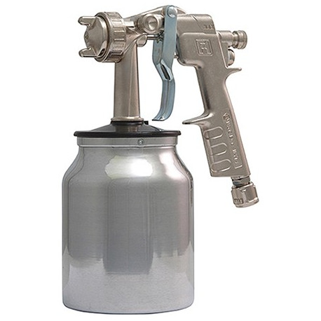 Aerografo per verniciatura con serbatoio inferiore in alluminio gr 1000 con chiusura a baionetta. Coperchio in Nylon 6. Tubo pescaggio serbatoio in Nylon diametro 10x8 mm.