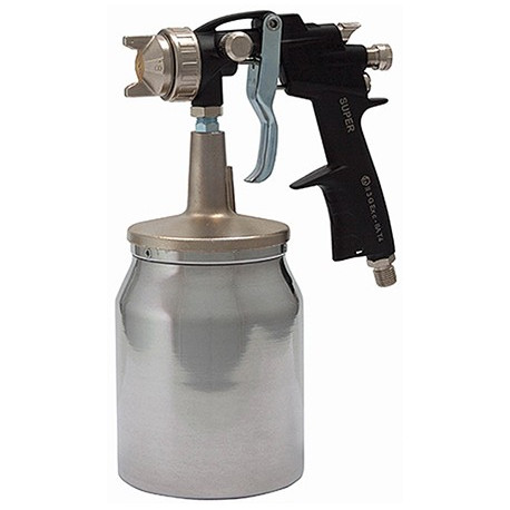 Aerografo professionale per verniciatura con serbatoio inferiore in alluminio gr 1000 con chiusura a baionetta. Coperchio in alluminio sabbiato e nichelato. Tubo pescaggio serbatoio in acciaio zincato.