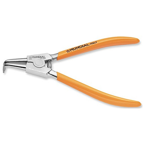 Pinza per anelli elastici esterni con becchi piegati. In acciaio al cromo vanadio. Impugnatura plasticata.