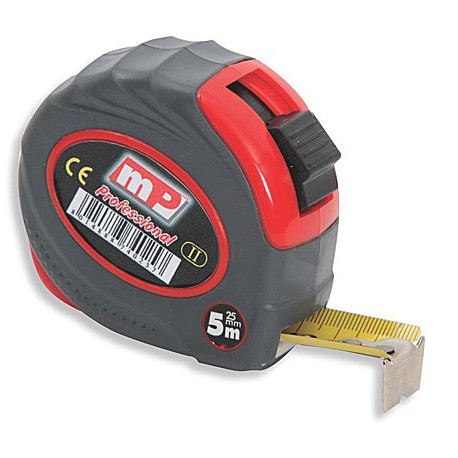 Rotella metrica con impugnatura propria di ciascuna misura per ottimizzarne la presa. Nastro giallo in fiberglass di larghezza pari a 13 mm, con telaio in plastica ABS. Attacco del nastro di tipo B. Bocca di uscita anti usura e asola per fettuccia di sicurezza.