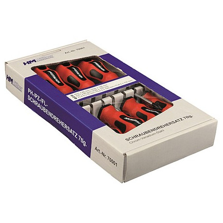 In acciaio al cromo-vanadio. Taglio misure: mm 4x75, 5,5x100, 6,5x125. Croce PH misure: mm PH1x80, PH2x100. Croce PZ misure: mm PZ1x80, PZ2x100.