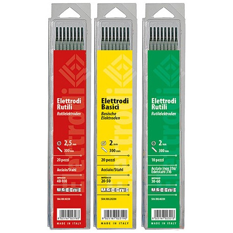 Tipo elettrodo/diametro x lunghezza mm/blister da pz. : rutilici/2.0x300/35