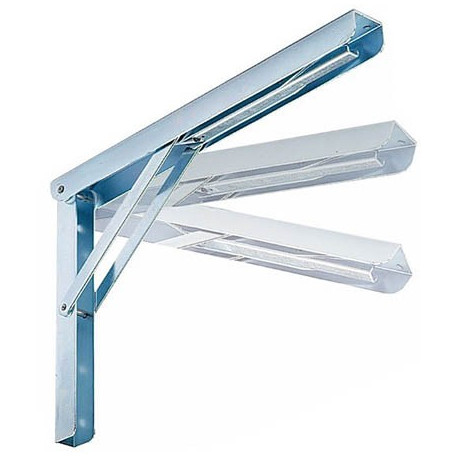 In acciaio zincato, ribaltabile a 3 posizioni 90 gradi - 80 gradi - 70 gradi con blocco di sicurezza nella posizione desiderata.