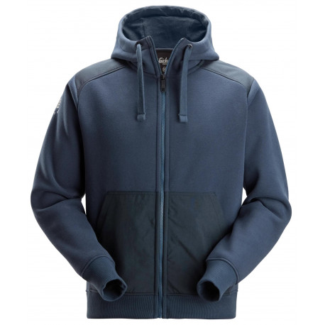 Libertà di azione. Felpa con cappuccio e cerniera di grande versatilità dotata di una tasca a marsupio frontale per tenere calde le mani. Un capo semplice, ma utile e facile da personalizzare.