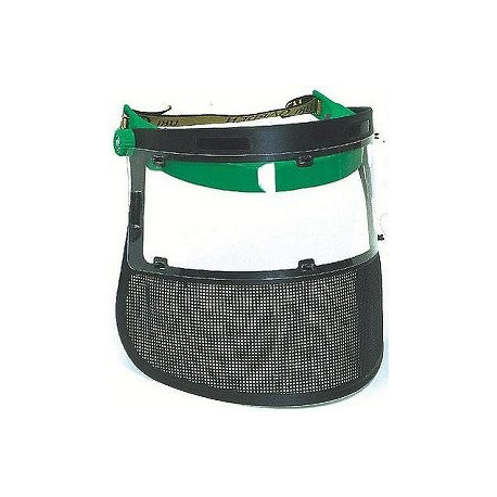 Testina parasole regolabile, con fori per l'areazione. Ampia visiera combinata policarbonato e rete da mm.190x 345. Policarbonato sostituibile