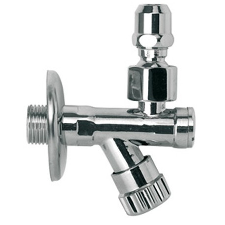 Rubinetto sottolavabo a vitone con filtro. Attacco tubetto snodato. Con rosetta copriforo, filetto da 1/2"