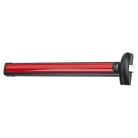 Con scrocco laterale autobloccante. Carter in lega di alluminio verniciato, scrocco in alluminio cromato. Lunghezza mm 1200 con barra accorciabile fino a 300 mm. Certificati CE