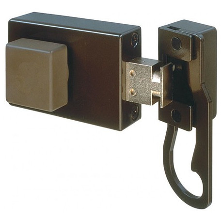 Per cancelli. Zincate, con tettuccio parapioggia e scrocco autobloccante, apertura interna con chiave, cilindro esterno fisso. Disponibile set viti fissaggio come ricambio.