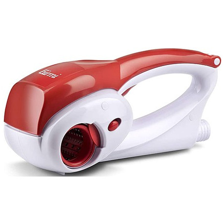 Potenza 12 Watt. Grattuggia ricaricabile con 2 rulli in acciaio inox (1 grana fine e 1 grana grossa). Impugnatura ergonomica. Dimensioni 245x120x105 mm. Completo di adattatore e base di ricarica.