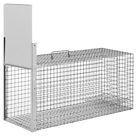 Trappola a 1 entrata di dimensioni 82,5x31,5x36,5h cm. Maglia della rete 25x25 mm.