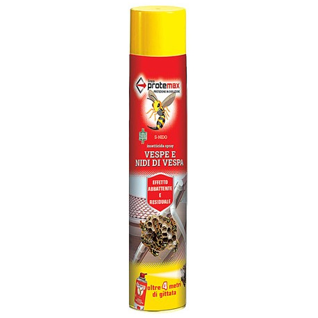 Insetticida spray pronto all'uso con una potente azione abbattente immediata contro vespe e nidi di vespe. Con particolare valvola erogatrice che permette di raggiungere al getto distanze di oltre 4 metri. Contenuto ml 750