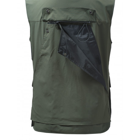 Gilet corto da caccia da uomo con carniere specificamente sviluppato per i climi caldi.