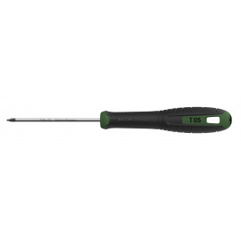 Cacciavite Torx® per uso professionale, sviluppato insieme agli artigiani. Design ergonomico per un comfort ottimale. La lunga impugnatura rivestita in gomma garantisce la presa per la precisione e la massima trasmissione di potenza. L'impugnatura è realizzata in resistente plastica PPC con un rivestimento in gomma resistente all'invecchiamento e di facile presa. La marcatura permanente del tipo e delle dimensioni sulla parte superiore, nonché il colore dell'impugnatura, rendono facile per l'utente selezionare il cacciavite giusto. La lama è realizzata in acciaio temprato di alta qualità per una lunga durata. L'impugnatura del cacciavite ha un foro per appenderla o fissarla. Il design dell'impugnatura impedisce al cacciavite di rotolare su superfici inclinate.
