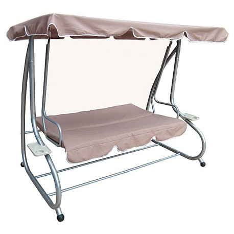 Dondolo reclinabile, in tubo d'acciaio verniciato. Copertura superiore in poliestere da 180 gr/mq. Seduta in poliestere da 160 gr/mq. Colore beige. Dimensioni 230x120x170 cm.