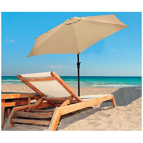 Ombrellone rotondo diametro 270 cm, con palo centrale a sezione tonda diametro 38 cm con manovella per la regolazione dell'altezza fino a 255 cm, con 6 stecche in acciaio e copertura colore ecru in poliestere da 180 gr/mq.