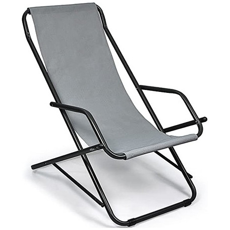 Sdraio basculante in acciaio con telo in textilene colore grigio. Misura aperto 101x63x85h cm. Made in Italy.