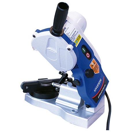 Affilacatena a disco abrasivo. Avanzamento della catena semi-automatico. Regolazione asportazione trucioli. Potenza 85 Watt. 5000 giri/minuto. Scocca in metallo. Diametro disco abrasivo 104x3,2x22 mm. Angolo di taglio +35/-35 gradi. Dimensioni 260x160x210 mm. Peso 2,9 kg.