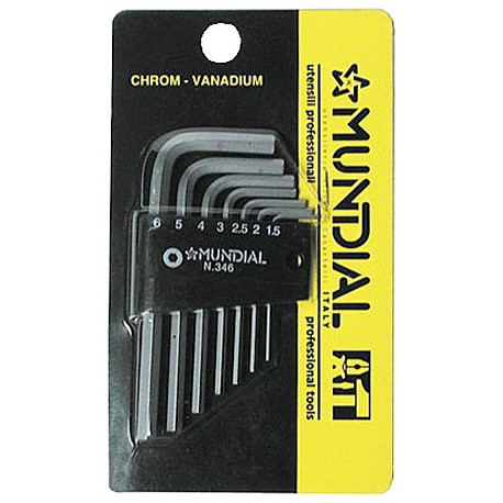 Serie 7 pezzi chiavi maschio esagonali di misure: 1.5, 2, 2.5, 3, 4, 5, 6. Con clip in plastica.