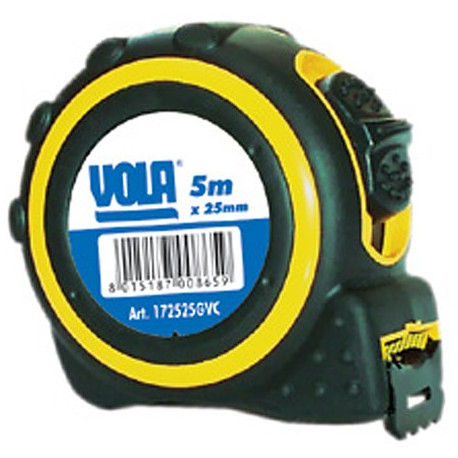 Flessometro professionale corpo in bi-componente: ABS giallo ricoperto di gomma nera antiurto. Nuovo design compatto ed ergonomico. Nastro in acciaio verniciato con doppio raggio di curvatura. Triplo rivetto di tenuta. Omologato in classe di precisione II.