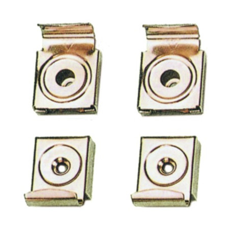 In acciaio zincocromato. Confezione: 4 ganci, 4 viti