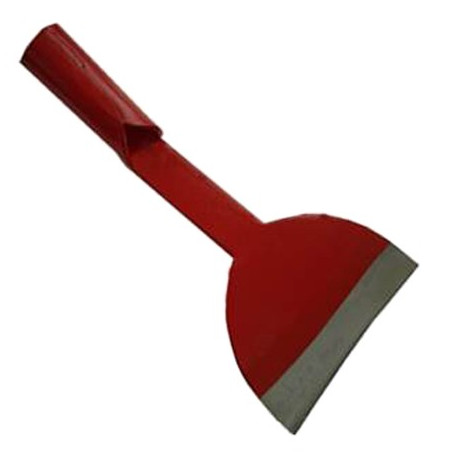 In acciaio, colore rosso. Lama curva cm 15. Codolo manico diametro 30 mm, lunghezza 300 mm.