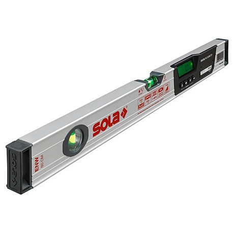 Livello con inclinometro elettronico integrato. Permette di misurare angoli in gradi o %. Dotato di segnale acustico a 0 gradi e 90 gradi e di autospegnimento. Nuova bolla brevettata FOCUS ad alta visibilita'. IP65. Tolleranza di misurazione in posizione standard 0,5 mm/m, capovolta 0,5 mm/m. Lunghezza mm 600