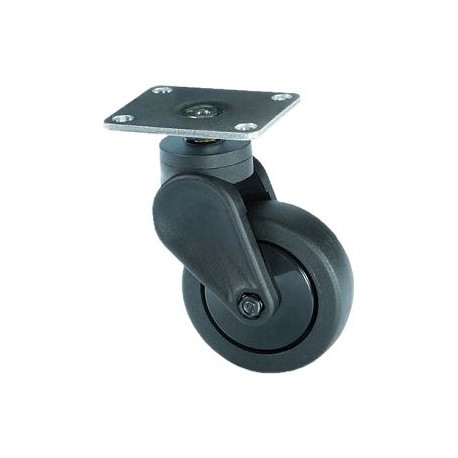 Supporto in nylon e fibra minerale, piastra in acciaio da mm.70x58. Ruote con nucleo in nylon e battistrada in poliuretano, diametro mm.75. Portata kg.60
