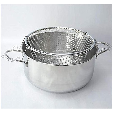 Friggitrice in acciaio inox con cestello. Diametro 24 cm. Adatta anche per piani ad induzione.
