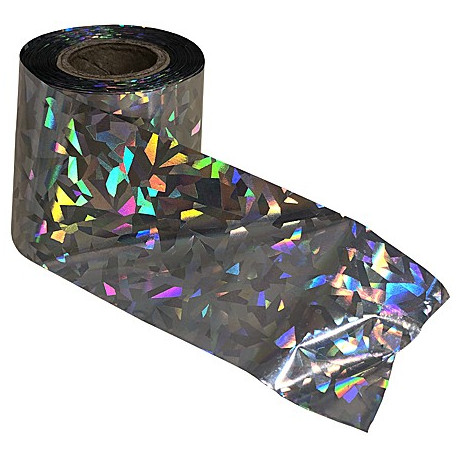 Nastro in materiale plastico con superficie oleografata, altezza 5 cm e lunghezza 45 m. Grazie alla superficie particolare scompone e riflette la luce e crea una barriera di riflessi ed effetti sonori muovendosi anche solo con una semplice brezza. Disturba i volatili impedendone lo stazionamento e la presenza. Resiste al sole e alla pioggia.